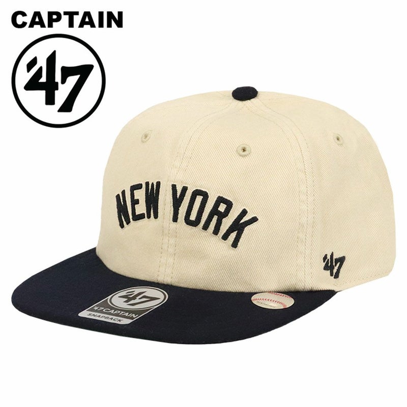 47/フォーティセブンのキャプテンシリーズから、MLB/メジャーリーグベースボール人気球団NEW YORK YANKEES/ニューヨーク・ヤンキースモチーフの6パネルベースボールキャップが入荷。存在感のあるレトロなチェーンステッチのフロントロゴが特徴。サンドストーンのツイル生地×チームカラーのネイビーのバイカラー仕様。クラシカルなデザインは幅広いファッション・コーデのアクセントぴったりのアイテムです。ストリート/カジュアル/アメカジ/古着Mix系のスタイルに特におすすめ。