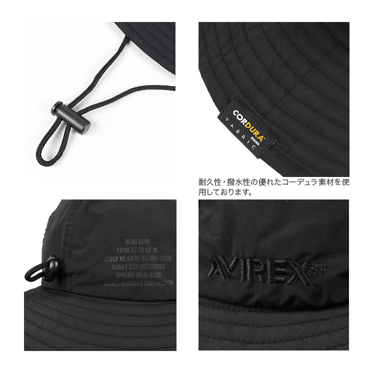 ミリタリーブランドのAVIREX/アビレックスから、高機能、高強度のコーデュラ素材を使用したサファリハットが入荷。軽量で撥水加工が施されていてさりげなくAVIREXのロゴ刺繍が配置されている、シンプルで使いやすいデザイン♪男性女性問わずご着用いただけます☆
