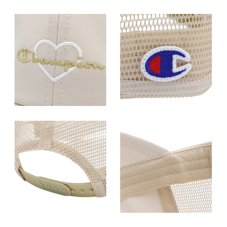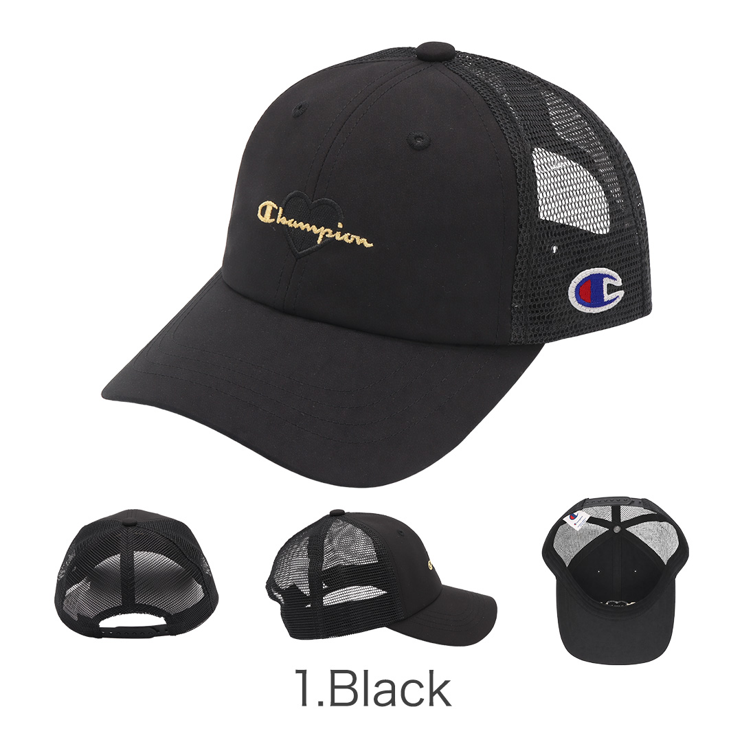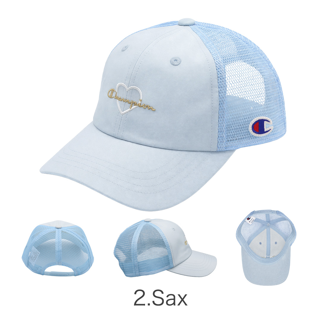 Champion/チャンピオンより、日差しから守りながら、おしゃれも楽しめるガールズメッシュキャップが入荷しました。マットサテン風のなめらかな生地に、ハート型のワッペン×ラメ糸刺繍をあしらった、リッチな雰囲気の甘辛ミックスデザイン。