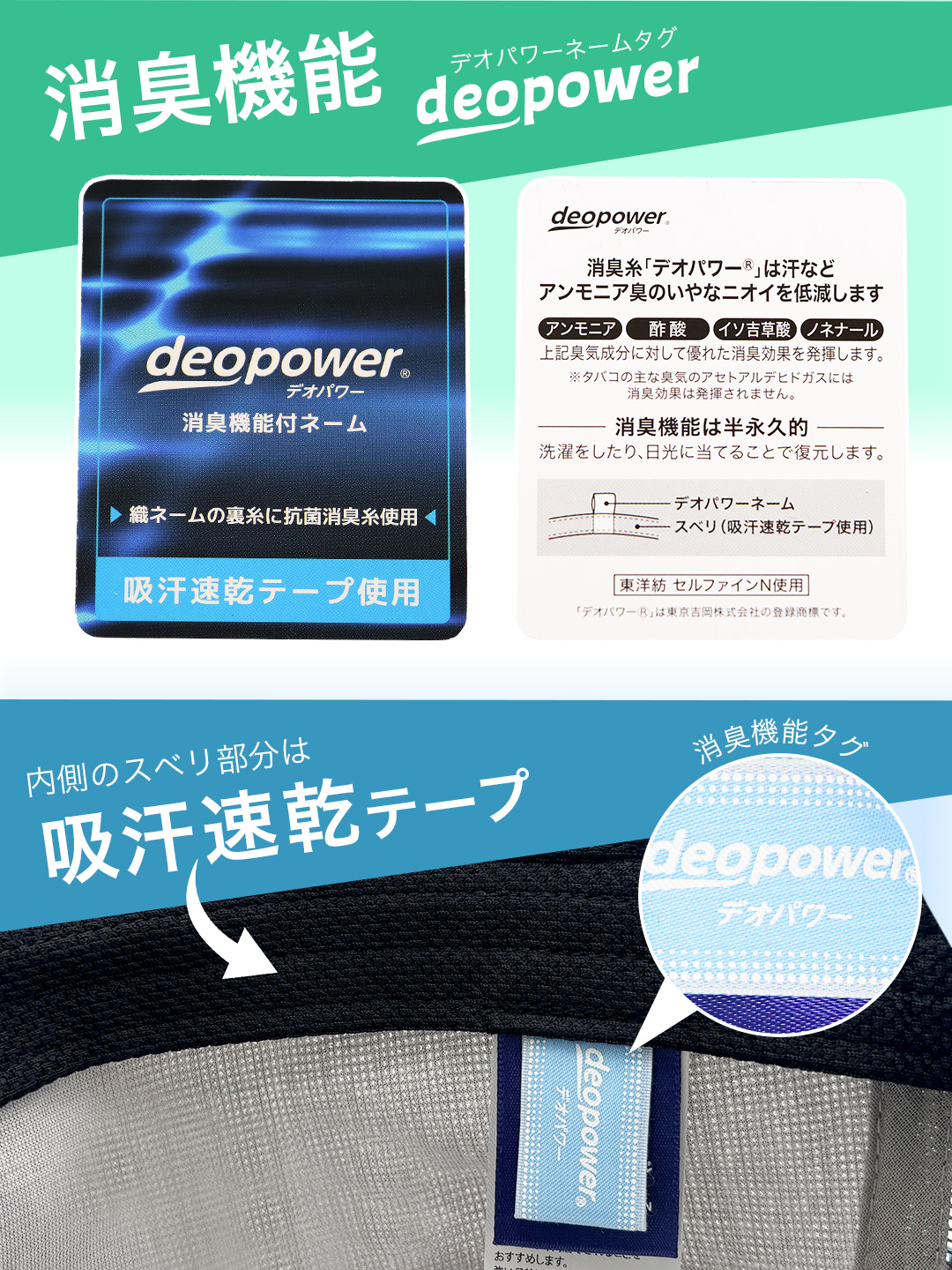 内側のスベリ部分には吸汗速乾テープ、ネーム部分には消臭糸を採用。芯なしの柔らかいクラウンに、ツバはカーブバイザー。サイズ調整可能なストラップバック仕様のため、ユニセックスで着用いただけるアイテムです。