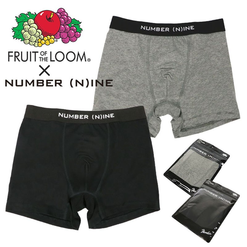 FRUIT OF THE LOOM/フルーツ・オブ・ザ・ルームから、前閉じタイプのボクサーパンツが入荷。ロック・パンクなど音楽の要素を多分に取り入れたブランド『NUMBER (N)INE (ナンバーナイン)』とのコラボレーションアイテム。フロントウエストゴム部分にブランドロゴが配置されたシンプルなデザイン。下着からカッコよくおしゃれを楽しみたい方はぜひゲットしてみてください。パックで届くのでプレゼントにもオススメ。