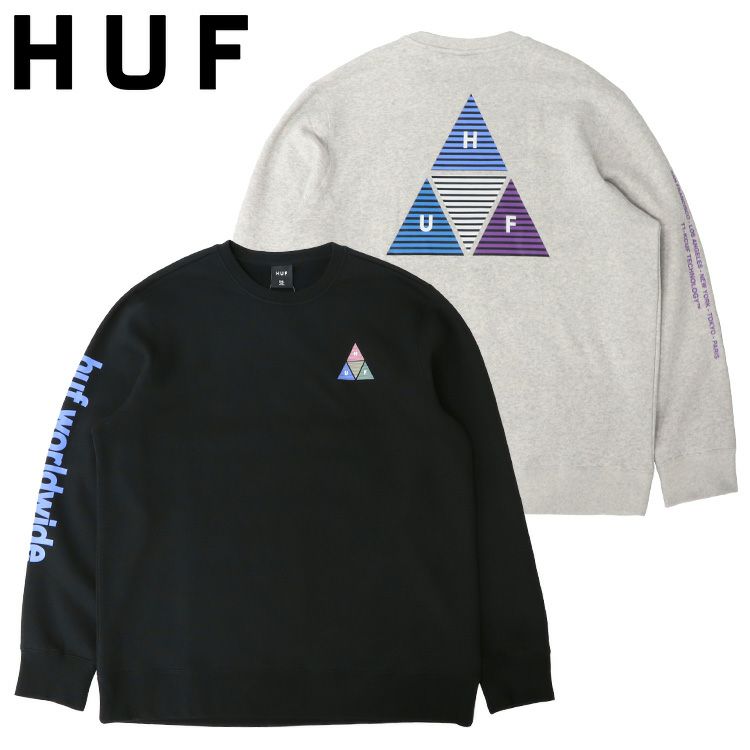 HUF/ハフから、クルーネックスウェットが入荷。左胸の部分とバックにトリプルトライアングルロゴがプリントされた定番の人気デザイン♪右袖に『huf worldwide』のプリントが入っています。裏起毛のヘビーウエイトスウェット生地を採用し、暖かいので秋口から春先までロングシーズン着回ししていただけます。ストリートファッションのコーデにおすすめの一点です!ピスネームもさりげなくてGOOD◎