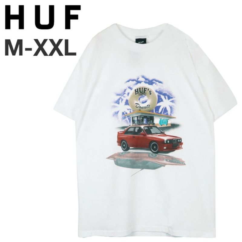 大人気のストリートブランド HUF/ハフから、半袖プリントTシャツが入荷。フロントに真っ赤なスポーツカーとドーナツショップのアートワークが施されたポップでアメリカンなデザイン。スプレーアート風のブランドロゴが配置されているので、スケーターファッション好きから車好きの方も必見!