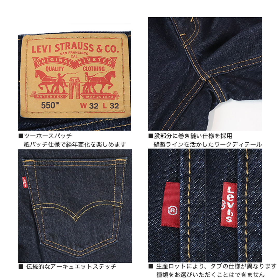 Levi's/リーバイスより、リラクシーなフィット感が魅力の「550 RELAXED FIT」が入荷。あらかじめ製品洗い(ウォッシュ加工)が施されており、初めて穿く時から程よくソフトな穿き心地がポイント。全体的にゆとりをもたせたシルエットながら、裾に向かって軽くテーパードを効かせることで、ルーズ過ぎない洗練されたデザインに仕上がっています。