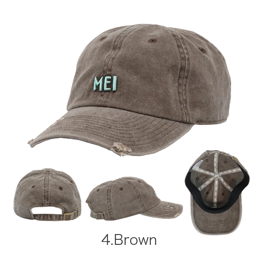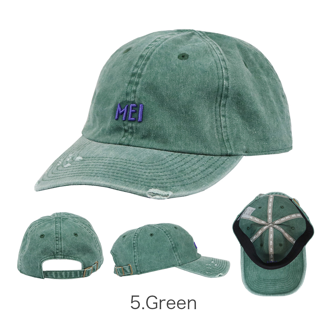 MEI/メイより、定番の6パネルキャップをトレンド感たっぷりにアップデートしたダメージローキャップが入荷。ピグメント加工による自然な色落ちが魅力のフェードボディに、アクセントカラーのロゴ刺繍が映える、ヴィンテージライクなデザインです。ウォッシュとダメージならではの、くたっとしたラフなこなれ感で雰囲気UP。