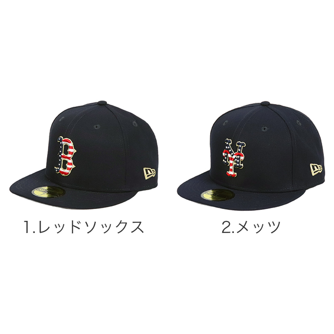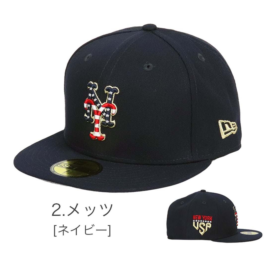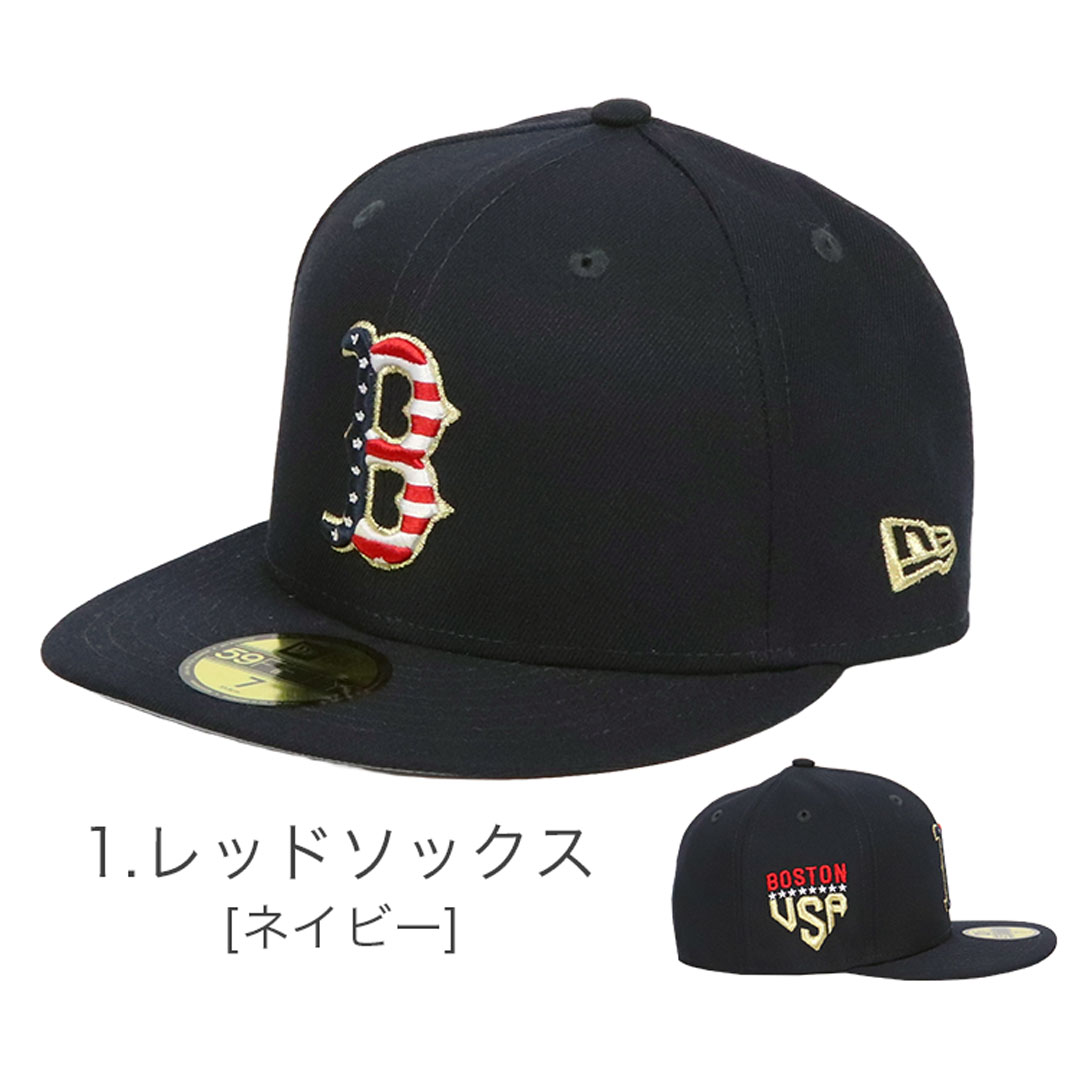 NEW ERA/ニューエラの定番人気モデル59FIFTYから、メジャーリーグベースボール各球団のアメリカ国旗柄のロゴがフロントに刺繍された6パネルBBキャップが入荷。サイドにはゴールドでUSAと刺繍されたこのデザインは、7月4日のインディペンデンス・デー(独立記念日)に選手が実際に試合で着用する記念モデル。ツバは真っすぐなフラットバイザー、芯ありのしっかりとしたフロントパネル、サイズ調整の無いFITTEDタイプ。