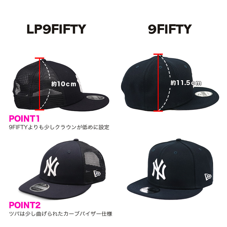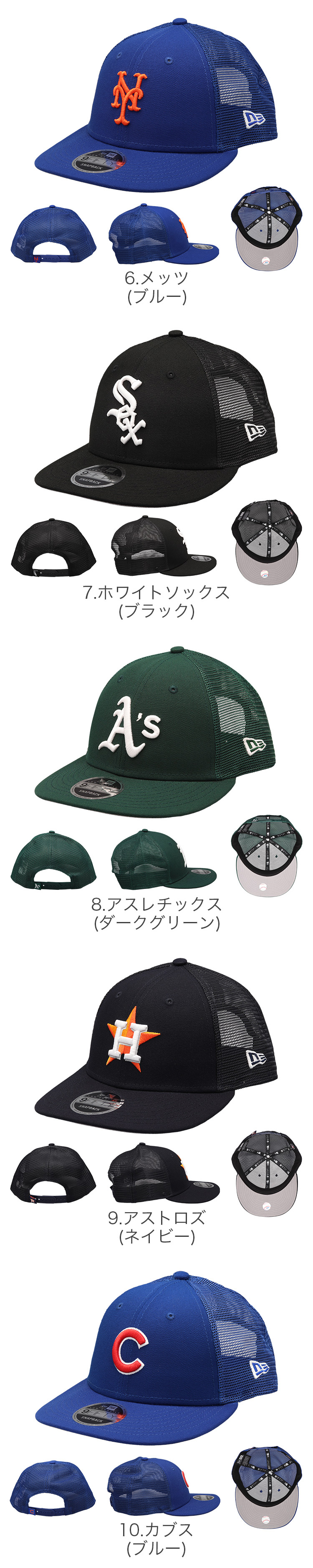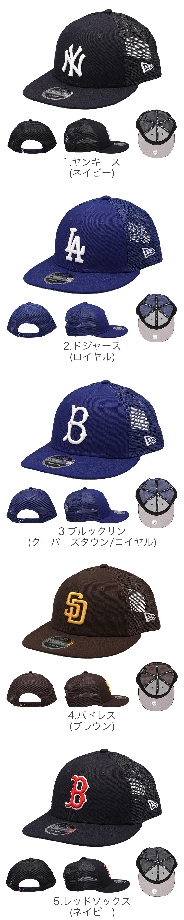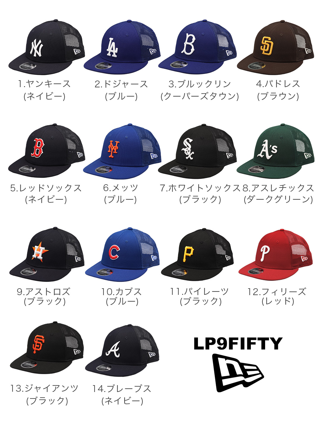 NewEra/ニューエラのLP9FIFTY(LP950)シリーズから、MLB/メジャーリーグベースボールにフォーカスした6パネルトラッカーキャップが入荷しました。通常の9FIFTYをベースにしたロープロファイル(LOW PROFILE)仕様で、クラウンはやや低めに設計し、つばはあらかじめカーブさせることで、かぶりやすくすっきりとしたシルエットに仕上げています。
