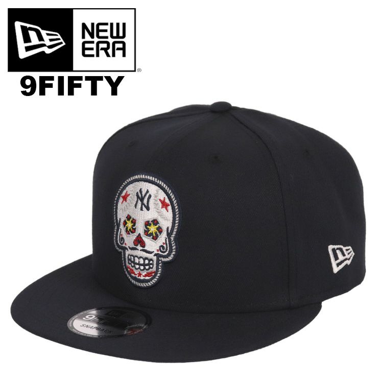 NewEra/ニューエラから、シュガースカル(=カラベラ/メキシカンスカル)をニューヨーク・ヤンキースデザインに仕立て上げた限定デザインの9FIFTYスナップバックキャップが入荷。ドクロにNYロゴと野球ボールの縫い目をうまく落とし込んだGOODデザイン♪日本ではほとんど流通していないアメリカ直輸入の希少アイテム。