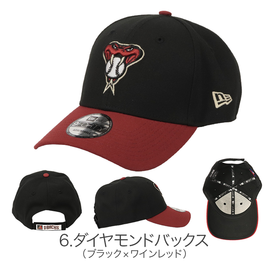 NewEra/ニューエラから、9FORTYシリーズの6パネルベースボールキャップが入荷。芯のあるしっかりとしたフロントパネルに、MLB/メジャーリーグベースボール各チームのロゴが刺繍されており、ツバはあらかじめ曲げられたカーブバイザー仕様。定番人気のシンプルなチームロゴとは一味違うラインナップで、ひとつ上のオシャレを楽しめるファッションアイテムです。後部のアジャスターでサイズ調整が可能なモデルで、メンズ・レディース問わずユニセックスで着用いただけます。