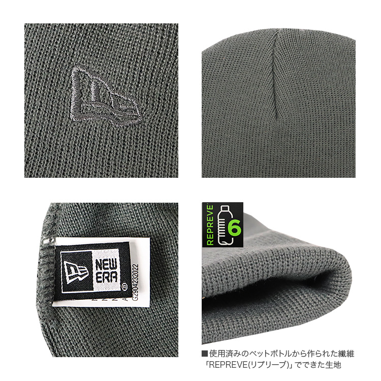 NewEra/ニューエラから、ボディにリサイクル素材を採用したエコなワッチキャップが入荷。使用済みのペットボトルから作られた繊維「REPREVE(リプリーブ)」でできた生地は、しっかりとした質感で表面はサラッとしています。サイドにボディと同色のブランドロゴがワンポイントで刺繍されたシンプルな無地デザインで、幅広いファッション・コーデに合わせやすいアイテム。オシャレを楽しみながらSDGsに取り組むことが出来ます。伸縮性のあるフリーサイズなので男女兼用で着用可能、プレゼントにもオススメです。