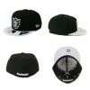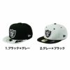 かっこいいチームロゴがフロントに配置。ブラックのボディにくすんだ水色のようなライトグレーのツバ、またはその逆か、好配色のツートンカラーはどっちにしようか悩みますね。後部のレイダースロゴもクールで◎