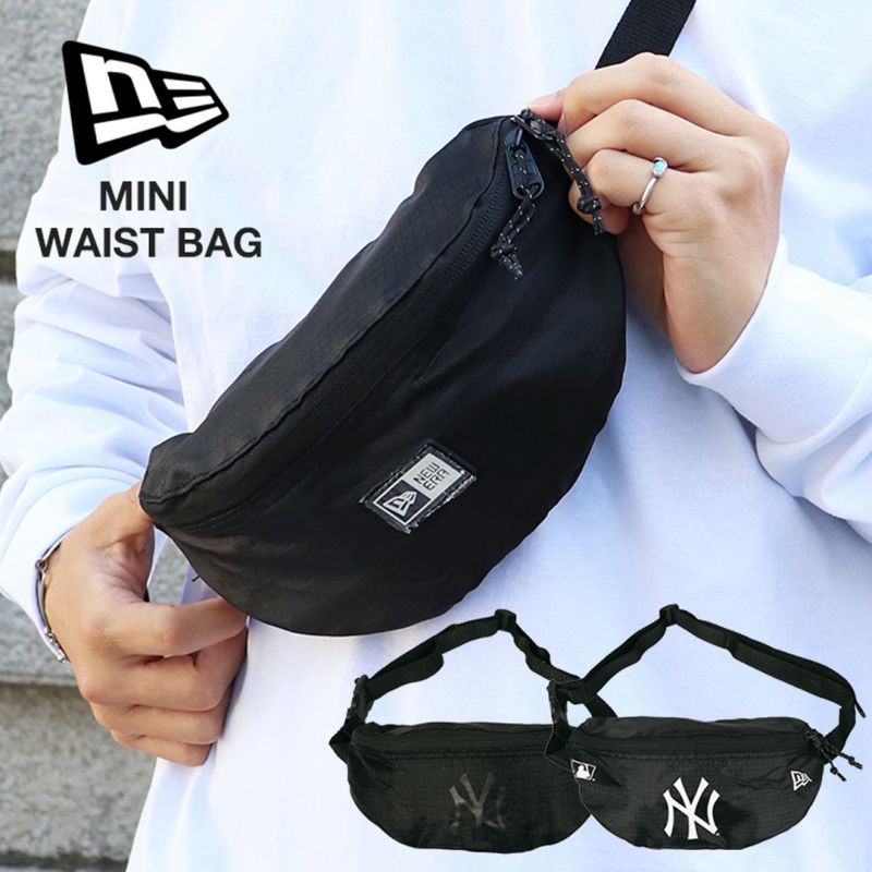 NewEra/ニューエラから、ブラック/黒色で合わせやすいミニウェストバッグが入荷。ブランドロゴのラバーパッチ、メジャーリーグ人気球団NEW YORK YANKEES/ニューヨーク・ヤンキースのロゴプリントの2パターンをご用意。薄い生地の1.5L小さめサイズで非常に軽く、且つ格子状のリップストップ生地で丈夫さも兼ね備えたアイテム。スマホや財布などの小物類が十分に収納できるメインのスペース+ICカードなどにちょうど良いポケットで、ちょっとした外出ならこれ1つでスマートにお出かけできます。サブバッグとしても◎ 長さ調整のできるバックルアジャスター付きなのでユニセックスで着用いただけます。