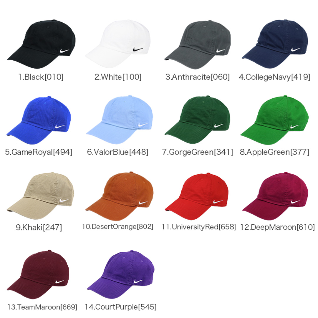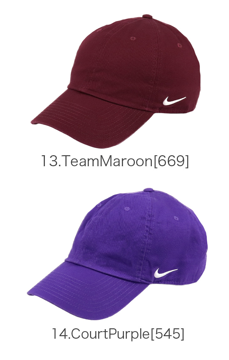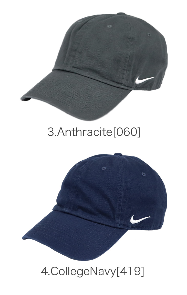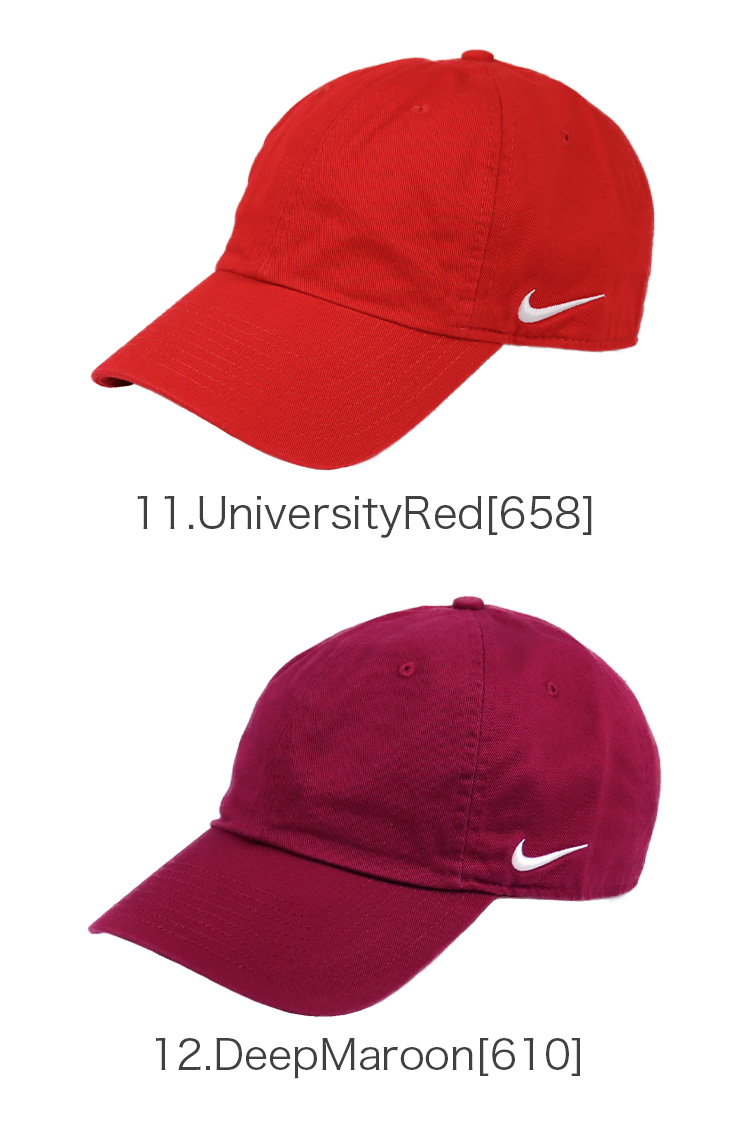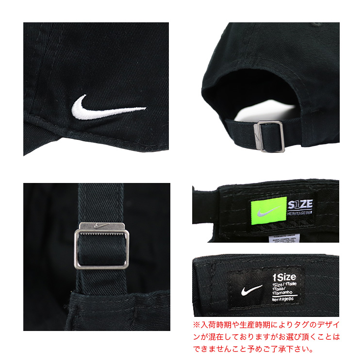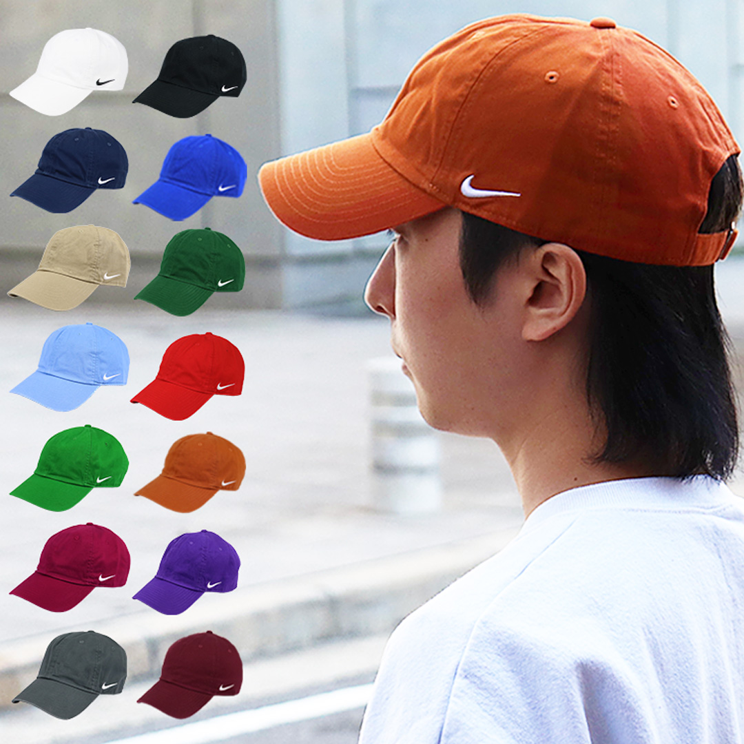 ナイキ/NIKEから6パネルキャップが入荷。フロント部分は無地でサイドにナイキのロゴが入ったシンプルなデザイン。ツバは元々曲げられたカーブバイザー仕様で浅めのローキャップ。豊富なカラーバリエーションでオールシーズン着用可能なのでおすすめの一点です。 後ろのアジャスターでサイズ調整が可能で、メンズ・レディース問わず男女兼用でご着用頂けます。