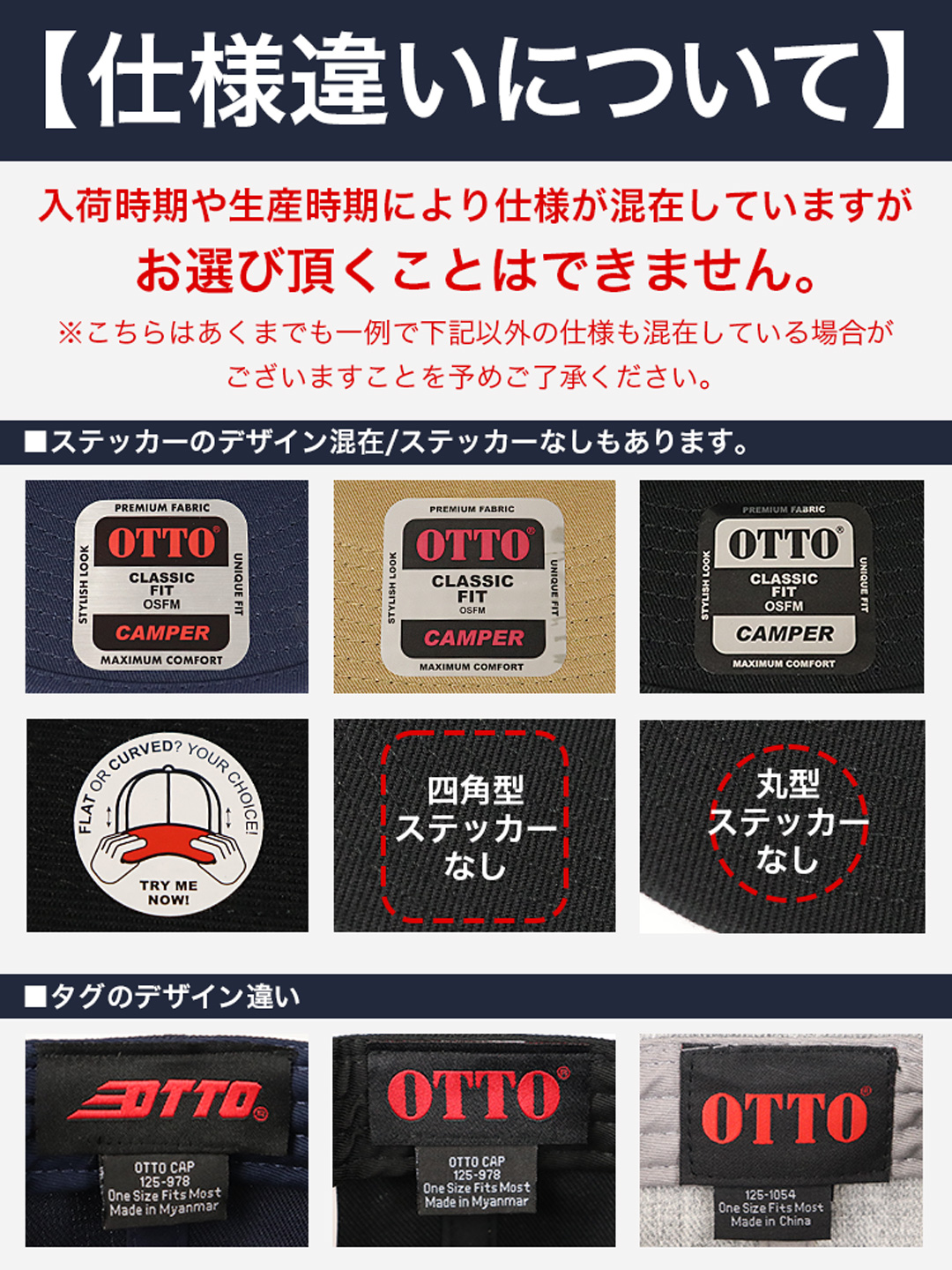 70年以上の歴史を誇るOTTO(オットー)は、アメリカ最大級の帽子専門ファクトリーブランド。様々なブランドがボディに採用するベースボールキャップは、実績に裏打ちされた高いクオリティを持ちながらコストパフォーマンスにも優れた、超定番ヘッドウェアとして人気を保ち続けています。シンプルな無地の帽子が欲しくなったら絶対にチェックすべき、王道キャップブランドです。