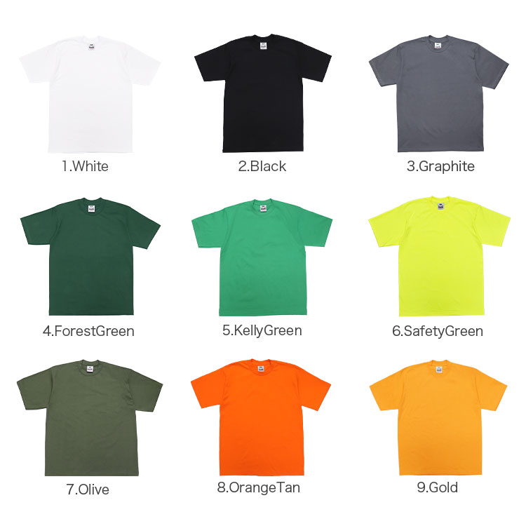 1.White/ホワイト、2.Black/ブラック、3.Graphite/グラファイト、4.ForestGreen/グリーン、5.KellyGreen/ケリーグリーン、6.SafetyGreen/蛍光グリーン、7.Olive/オリーブ、8.OrangeTan/オレンジ、9.Gold/イエロー