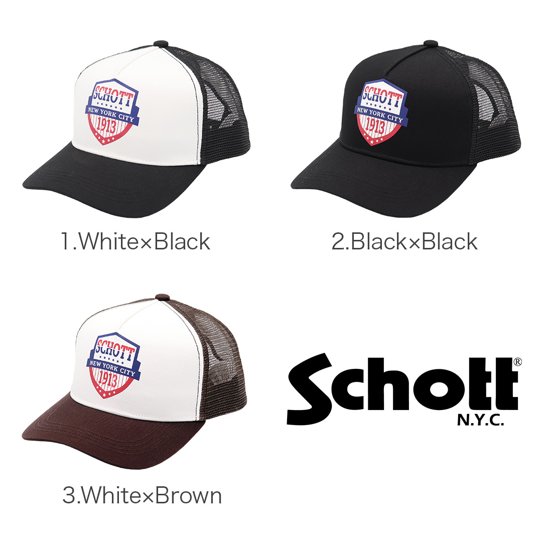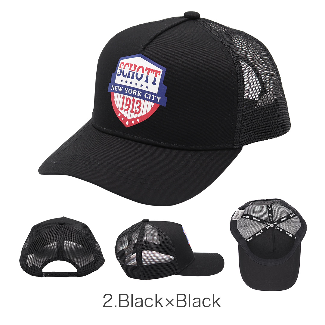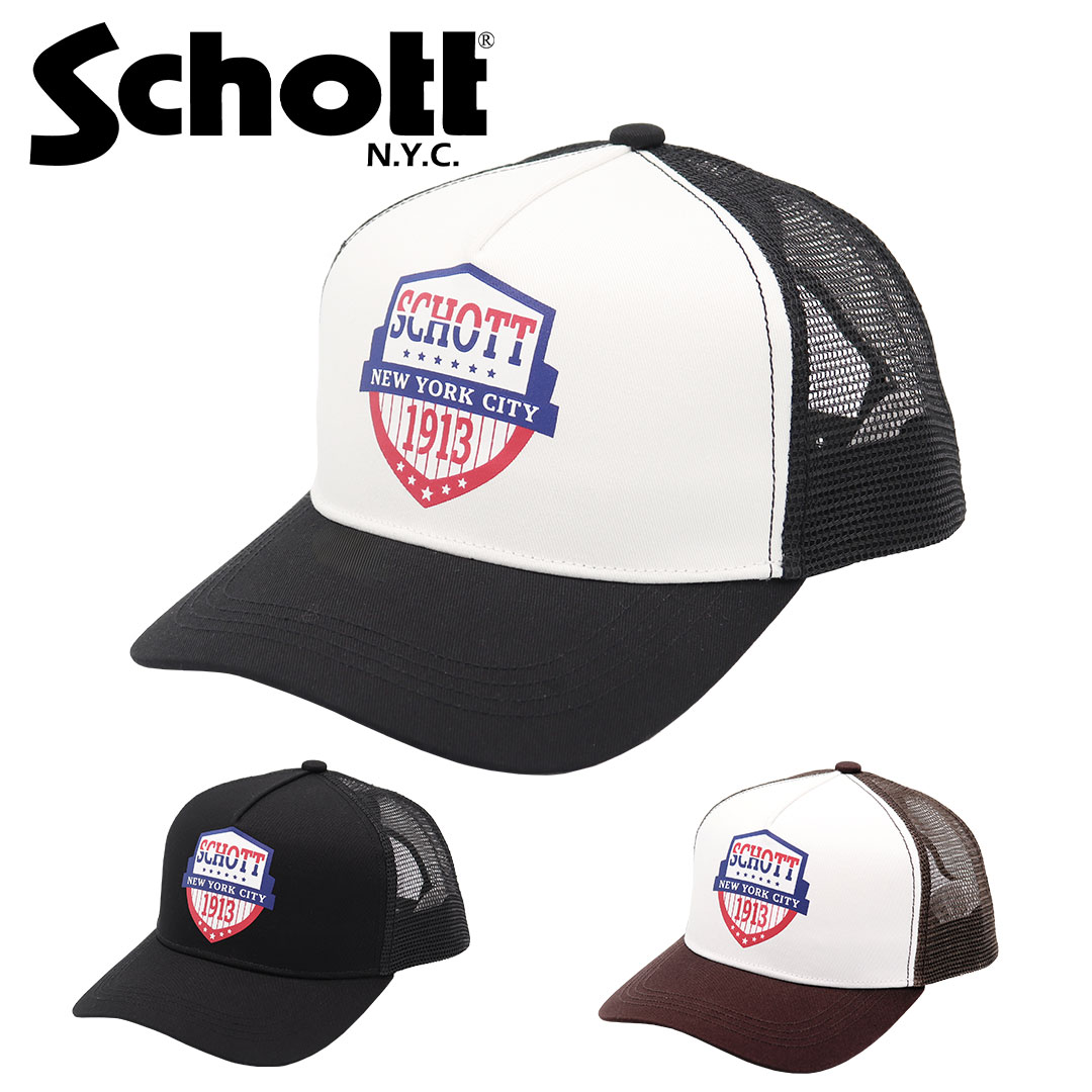 アメリカの老舗レザーブランド Schott/ショットより、武骨でタフな佇まいの5パネルトラッカーキャップが入荷しました。エンブレム風のプリントロゴと切替デザインが、クラシックな雰囲気を演出。綿ツイル生地とメッシュ素材を組み合わせ、通気性が高く、暑い時期でも快適な被り心地を実現します。