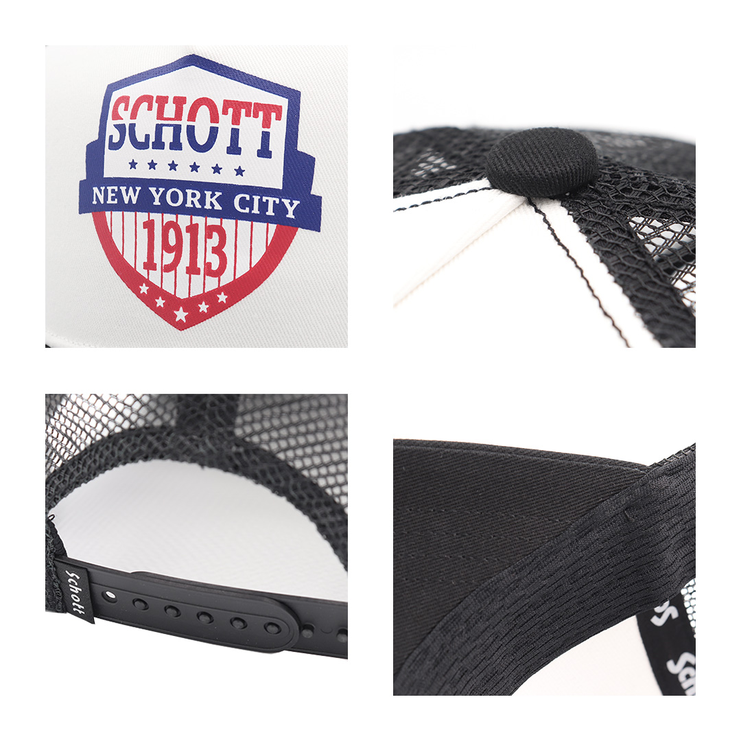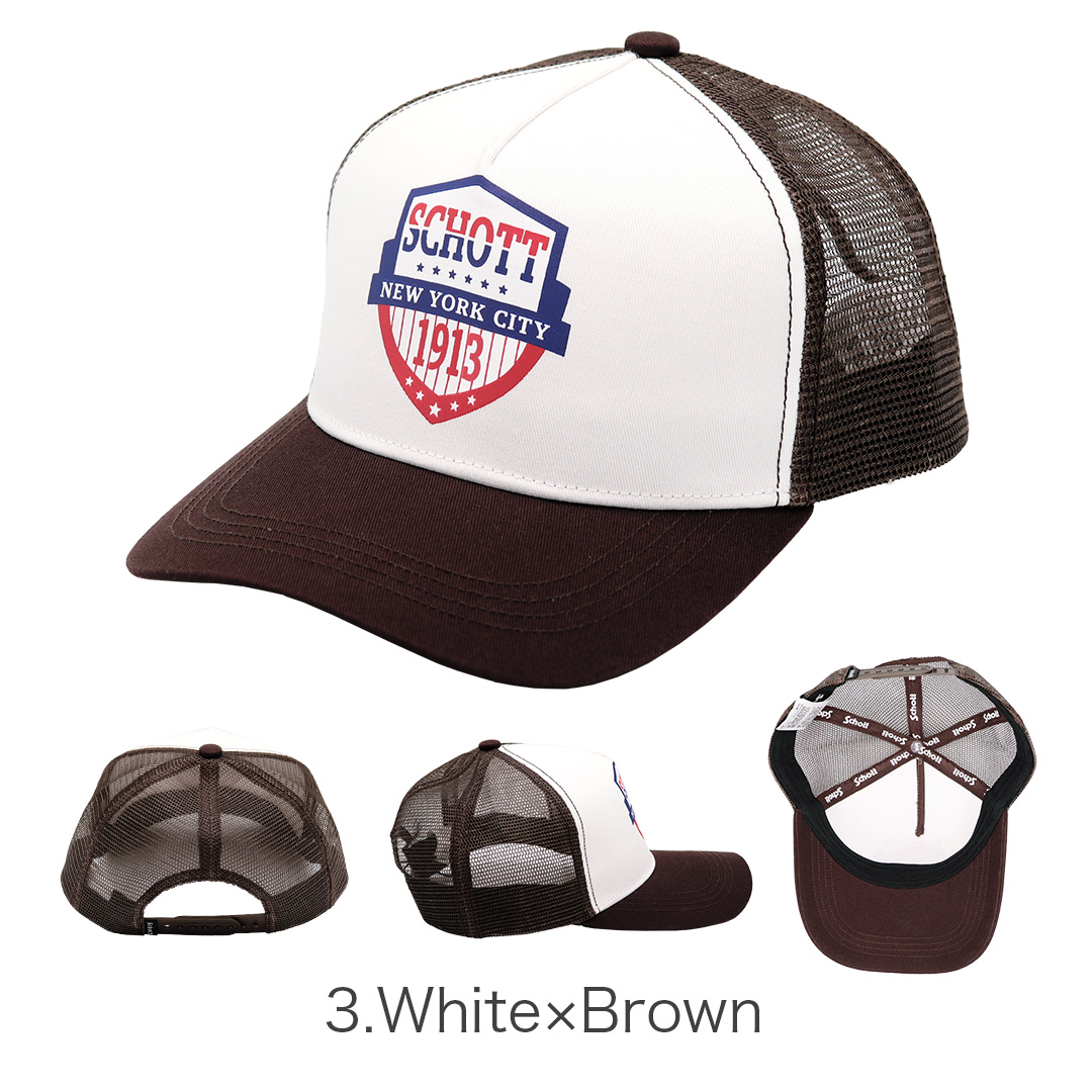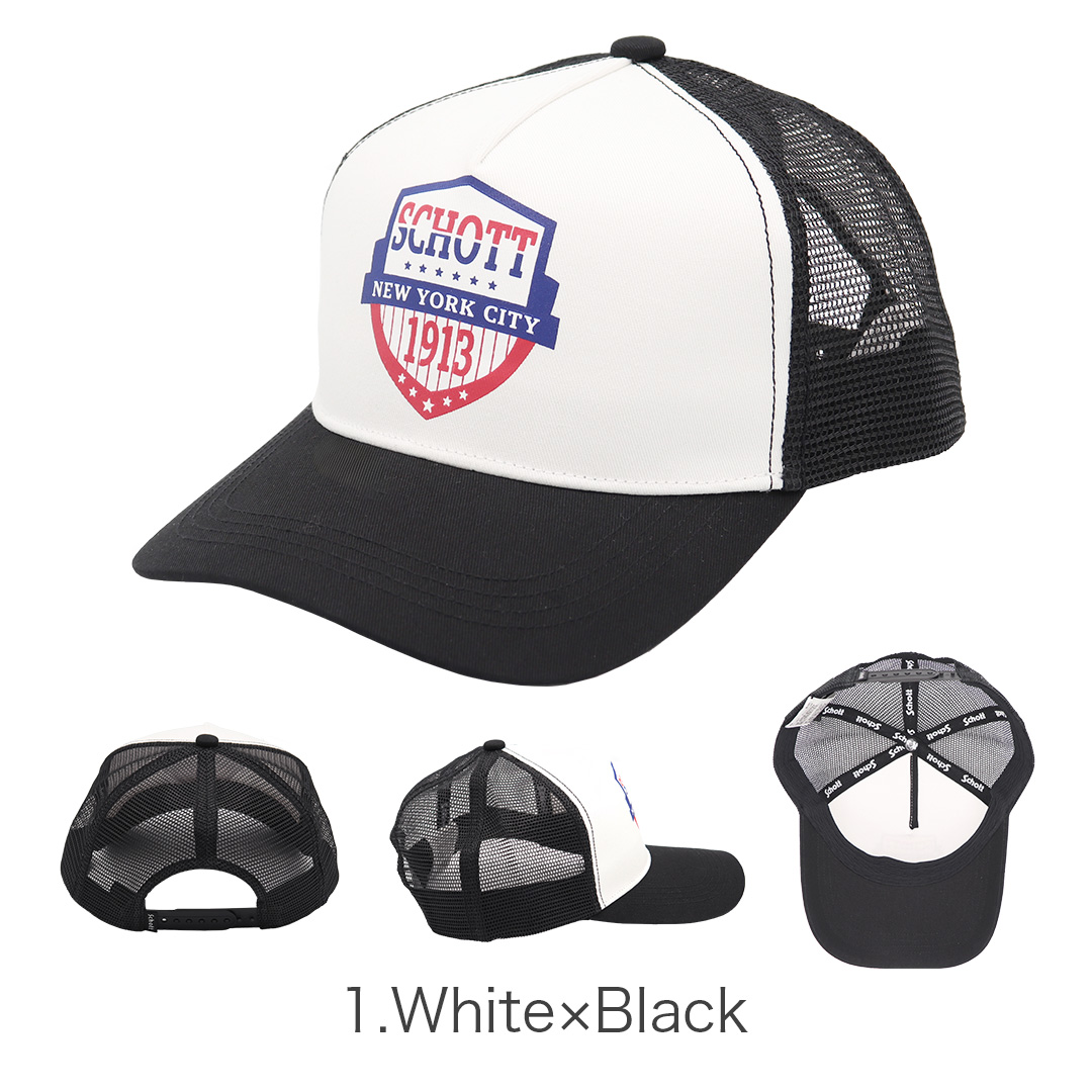 アメリカの老舗レザーブランド Schott/ショットより、武骨でタフな佇まいの5パネルトラッカーキャップが入荷しました。エンブレム風のプリントロゴと切替デザインが、クラシックな雰囲気を演出。綿ツイル生地とメッシュ素材を組み合わせ、通気性が高く、暑い時期でも快適な被り心地を実現します。