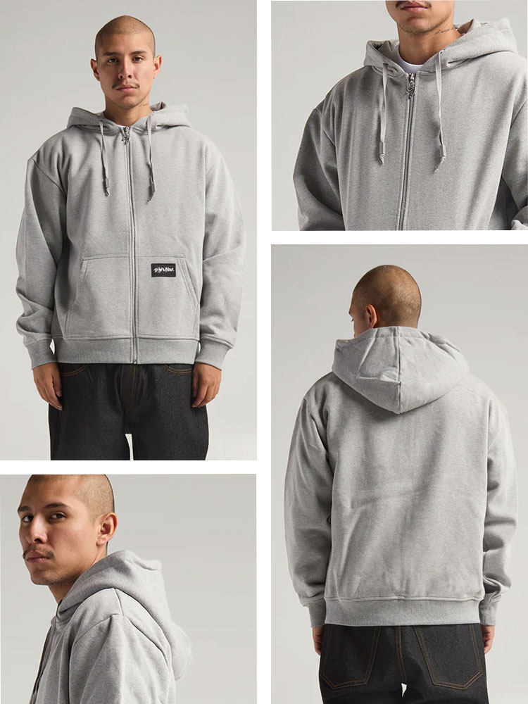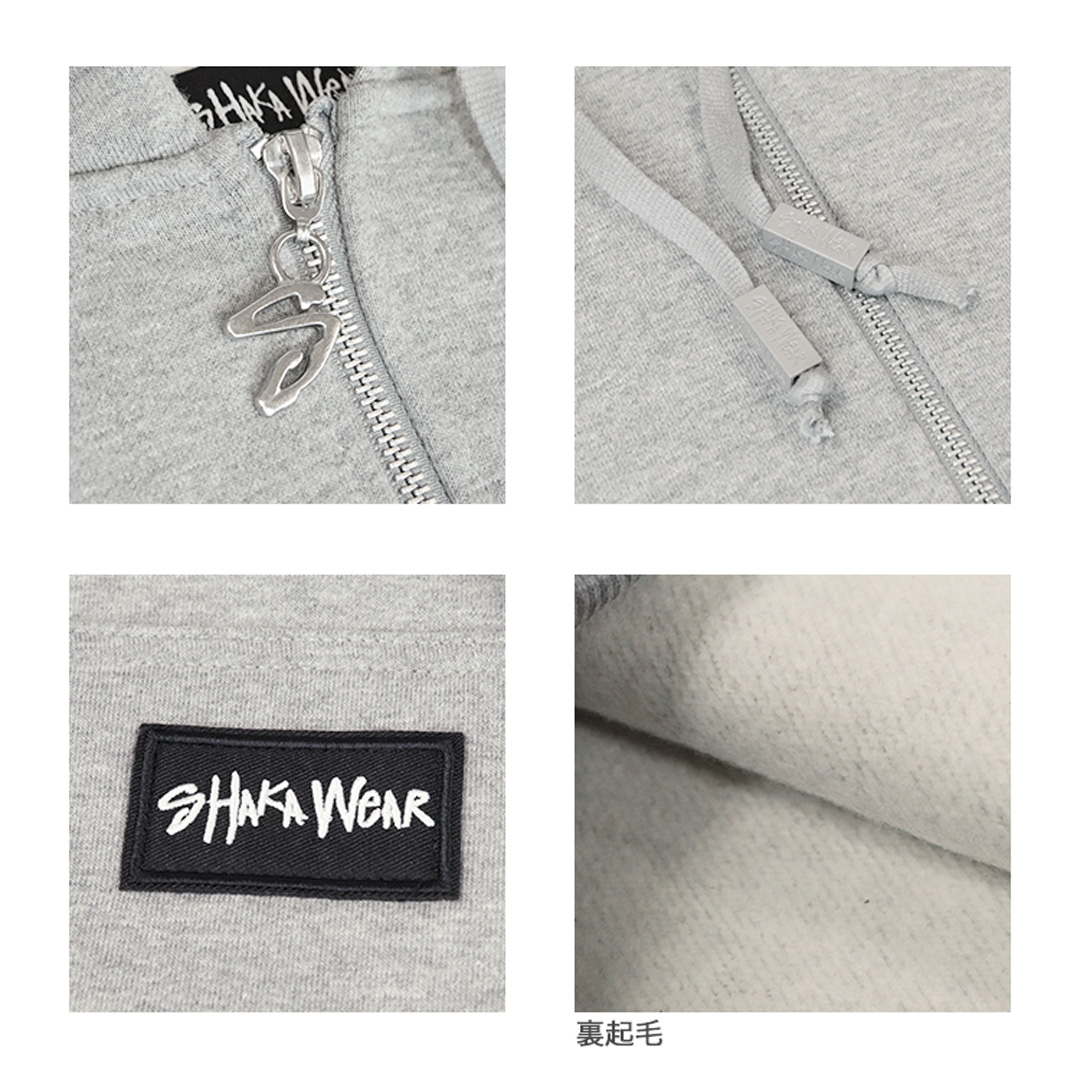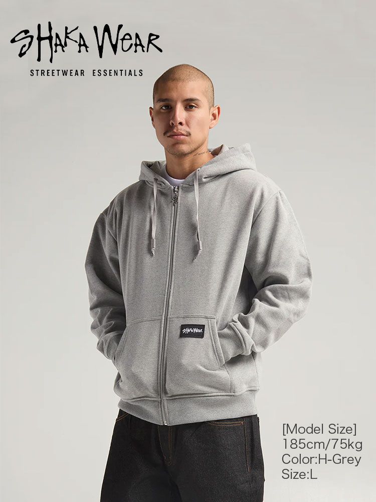 SHAKAWEAR/シャカウェアより「Essential Super Heavyweight Zip Hoodie」が入荷。ベーシックな無地デザインの中でも珍しい、ボックスロゴのワッペンがワンポイントとしてあしらわれたフルジップアップパーカーです。ちょっとした羽織りとしてラフに着こなすのはもちろん、アウターやジャケットのインナーとして合わせれば、トレンドのレイヤードスタイルを楽しめます。