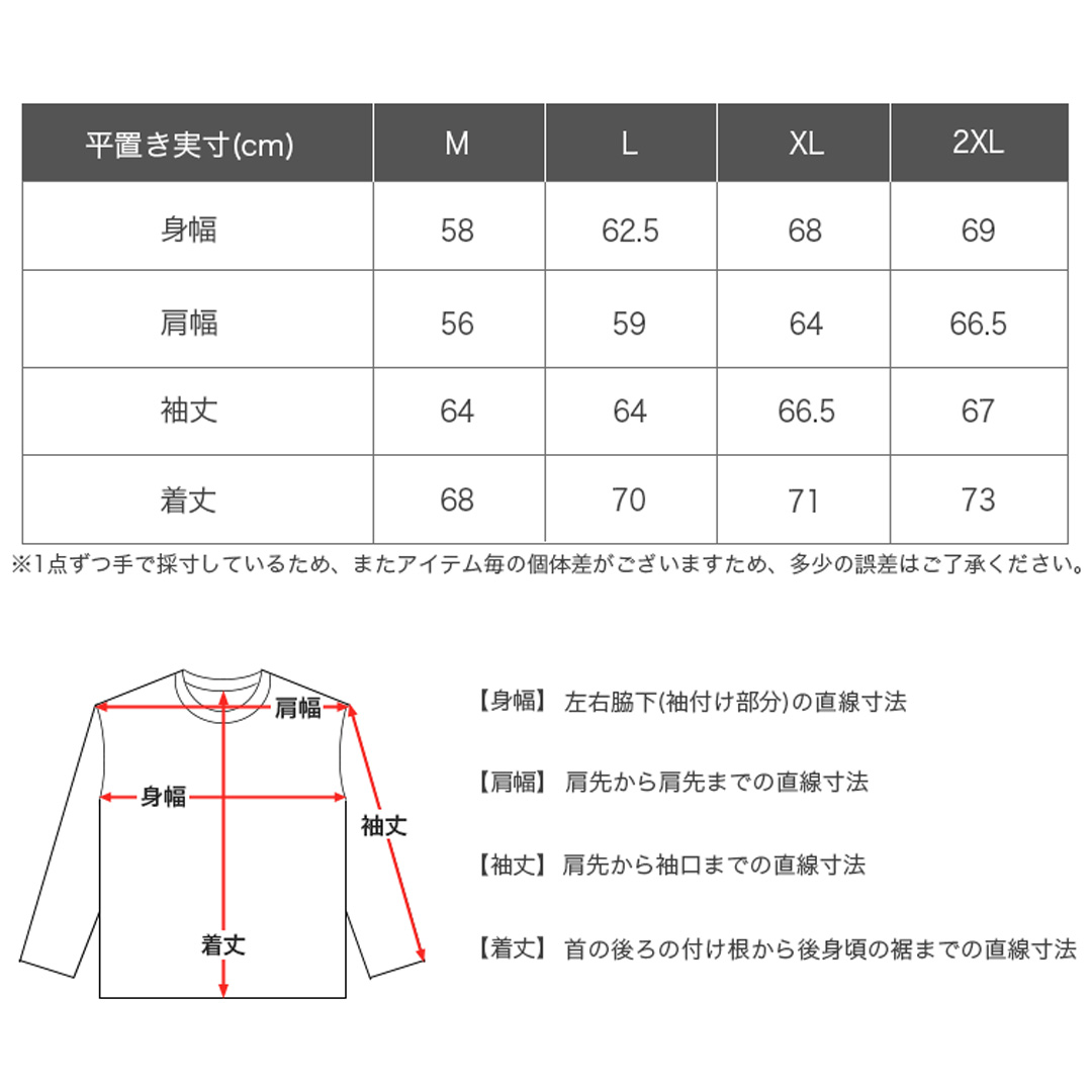 平置き実寸(cm)[身幅/肩幅/袖丈/着丈]