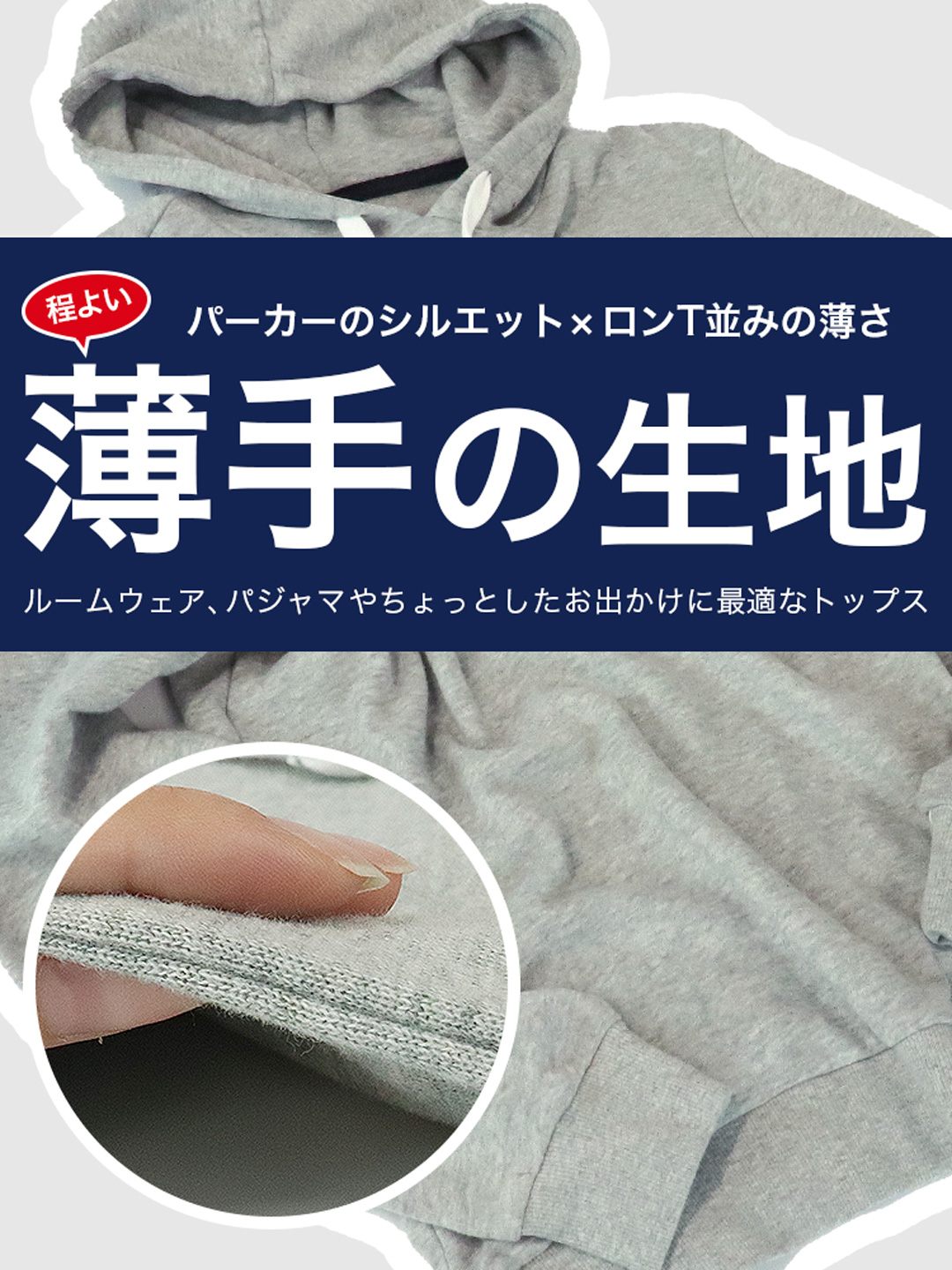 袖口と裾はリブ仕様で、ほどよいフィット感があり、着丈はやや長めの設計。ブランドロゴのプリントがアクセントになったシンプルなデザインで、メンズサイズですが、ユニセックスでも着用いただけます。裏起毛のあたたかさがありながらも薄手でごわつかない、ライトな着心地の一着。