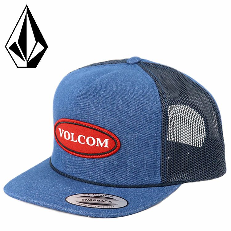 VOLCOMから赤いボルコムロゴのワッペンがデニム調のフロントパネルに貼られたメッシュキャップが入荷。両サイド部分だけがメッシュになっていて、フロントとリアは通常のボディという、ボルコムらしい少し変わったメッシュキャップ。ツバは少しだけ曲げられたゆるやかなカーブバイザー、スナップバックでサイズ調整が可能。