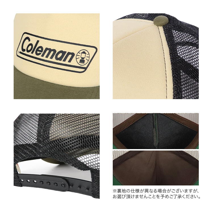 アウトドアブランドのColeman/コールマンから、フロントにブランドロゴがプリントされた5パネルメッシュキャップが入荷。通気性が良く蒸れないので暑い時期でも快適に着用可能、キャンプなどのレジャーシーンに最適なアイテム。抜け感を演出するタウンユースもオススメ◎ 芯ありでソフトな触り心地のフロントパネル、ツバはあらかじめ曲げられたカーブバイザー、後部のスナップバックでサイズ調整が可能なので男女兼用でご着用いただけます。
