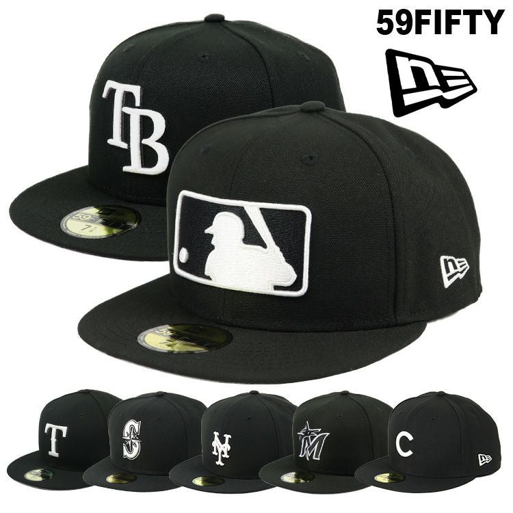 6. ニューエラ キャップ 59FIFTY New Era mens メンズ帽子 ニューエラ マリナーズ メッツ カブス レイズ レンジャーズ ブラック&ホワイト 白・黒 MLB メジャーリーグ ベースボールキャップ モノトーン 通販 人気 ブランド
