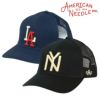 AmericanNeedle から、定番モデル"VALIN"の5パネルトラッカーキャップが入荷。アフリカ系アメリカ人を中心とした野球リーグ「Negro Leagues(ニグロリーグ)」で、特に人気のあるニューヨーク・ブラックヤンキース、ロサンゼルス・エンゼルスをフューチャーしたデザインが魅力的です。綿ツイル(キャンバス)生地とメッシュ素材の組み合わせと、あたたかみのある刺しゅうロゴがレトロな雰囲気を演出。