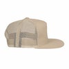 芯のあるしっかりとしたフロントパネルに、ツバは真っすぐなフラットバイザー(平ツバ)。後部のスナップバックでサイズ調整が可能。