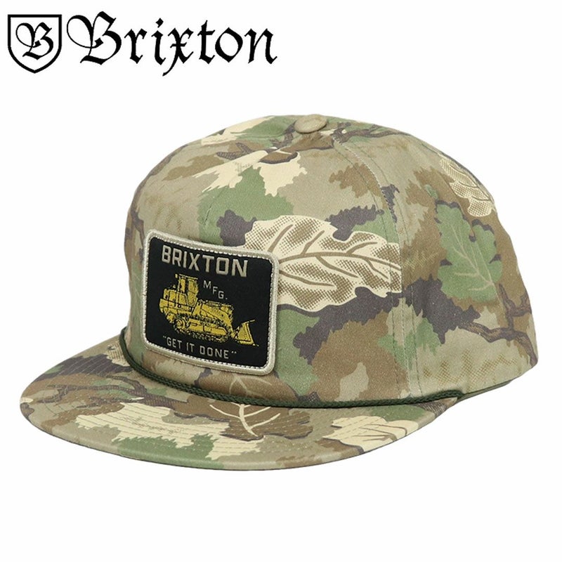 ストリートブランドのBRIXTON/ブリクストンから、5パネルBBキャップが入荷。ブルドーザーが描かれたボックス型のパッチがフロントにオン。ボディ全体はリーフ迷彩柄になっており、アウトドア/アーミー・ミリタリー系のファッションにもよく合います。軽い加工がかかったウォッシュドコットンを使用、ツバは真っすぐなフラットバイザーでボディとの繋ぎ目にロープ、芯なしの柔らかいフロントパネルの裏側にはメッシュの前立て付きなど、細部から伝わるレトロな雰囲気も魅力的◎ 後部のスナップバックアジャスターでサイズ調整が可能なのでユニセックスで着用いただけます。