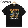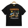 Carrots/キャロッツから、半袖Tシャツが入荷。フロントに大きくブラジルのリオ・デ・ジャネイロにある「イパネマビーチ」で海水浴場を楽しんでいるウサギの様子が描かれたプリントが配置されているポップで可愛いデザイン。袖口には人参のロゴワッペンが入った男性はもちろん女性がダボっと着てもかわいいので、メンズ・レディース問わずユニセックスでご着用頂けます。