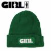 大きなワッペンとパッと映えるグリーンがポップな印象のGIRL/ガールのニットキャップ。やわらかい生地でクタッとしたシルエットがユーズド感のある、オールドスクールな風合いも感じられるアイテムです◎伸縮性があるので男女兼用でご使用頂けます。