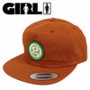オレンジ色のボディにグリーンのワッペンが印象的なGIRL/ガールのキャップ。スナップバックの横についているブランドタグも見逃せないおしゃれポイント♪シンプルなファッションに取り入れたい、差し色が効くアイテムです。落ち着いたトーンの色味なので通年着用できる逸品です!