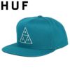 HUF/ハフからトリプルトライアングルロゴキャップが入荷!三つの三角形を組み合せたロゴマークはHUFの大人気定番☆バックにピスネームを添えたアジャスタを搭載するスナップバック仕様。ツバはフラットバイザーでフロントパネルに芯があり、しっかりした印象の商品となってます。