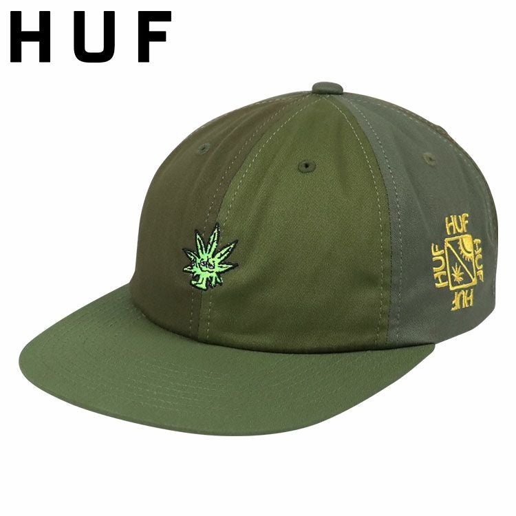 ストリートファッションの人気ブランドのHUF/ハフから、キャップが入荷。フロントにはグリーン・バディ、サイドにはオリジナルロゴの刺繍が配置された6パネルキャップ。レトロなアースカラーのパネル配色がポイントです♪フロントパネルに芯はなく、ツバは真っすぐなフラットバイザー(平ツバ)。後部のスナップバックでサイズ調整が可能。