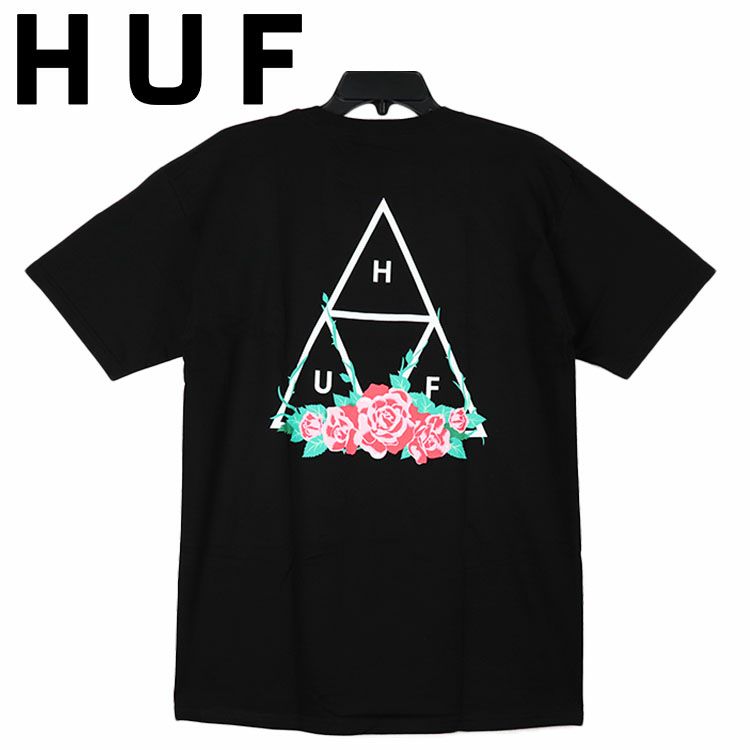 スケーターはもちろん幅広い層から人気のスケートブランドHUFから定番人気であるTRIPLE TRIANGLEロゴに、ローズ(バラ)が組み合わせたデザインが大きくバックプリントされた半袖Tシャツが入荷。フロントの左胸にもTRIPLE TRIANGLEロゴがデザインされている。裾にピスネームが施されているのがさりげなくてGOOD◎