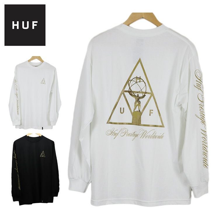 スケーターはもちろん幅広い層から人気のスケートブランドHUFから、定番のTRIPLE TRIANGLE(トリプルトライアングル)ロゴと迫力のある銅像が大きくバックプリントされたロンT(長袖Tシャツ)が入荷。フロントの左胸にはTTロゴが、右袖にはHuf Prestige Worldwideとプリント。ボディ色のブラック・ホワイトともにゴールドカラーとの相性がバッチリのグッドカラーリング。プリントの左前の裾にピスネームが施されているのもさりげなくてGOOD◎