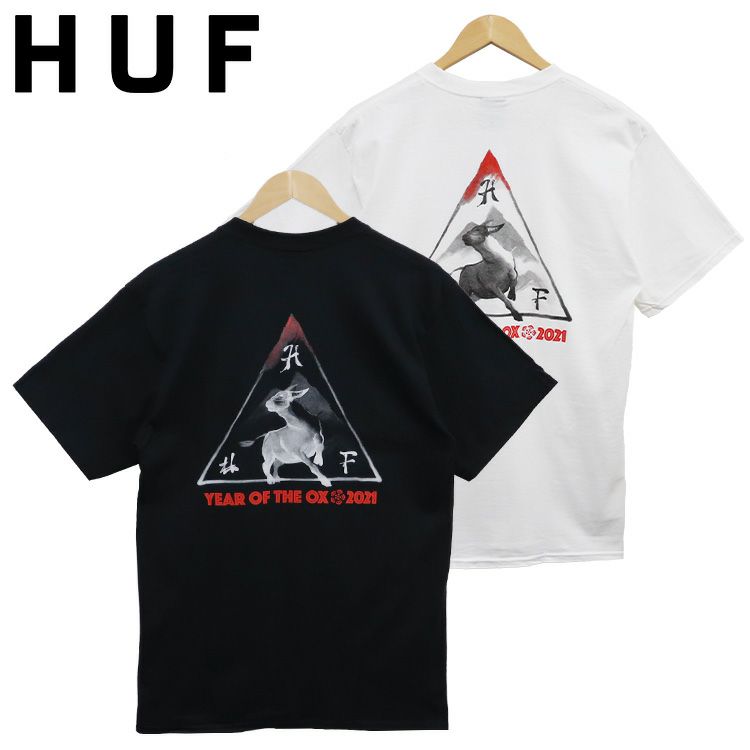 ストリートファッションの人気ブランドのHUF/ハフから、半袖Tシャツが入荷。左胸とバックプリントは2021年の干支「丑」がトリプルトライアングルロゴになった和風感漂う渋い一点となっております。HUFファン・牛好きの人はもちろん、年男・年女の人もぜひゲットしておいてください♪トレンドのビッグシルエット/オーバーサイズで着こなすのがおススメ☆