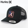 人気サーフブランドのハーレーからアメリカ国旗カラーのボックスロゴが刺繍されたメッシュキャップが入荷。ボディはすべてブラックで統一されているため、ロゴ部分が目立っていてかっこいい。後部のスナップバックでサイズ調整可能。