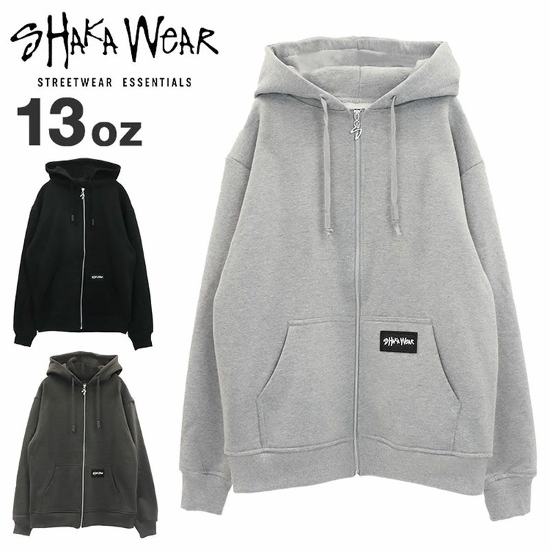SHAKAWEAR/シャカウェアより「Essential Super Heavyweight Zip Hoodie」が入荷。ベーシックな無地デザインの中でも珍しい、ボックスロゴのワッペンがワンポイントとしてあしらわれたフルジップアップパーカーです。ちょっとした羽織りとしてラフに着こなすのはもちろん、アウターやジャケットのインナーとして合わせれば、トレンドのレイヤードスタイルを楽しめます。