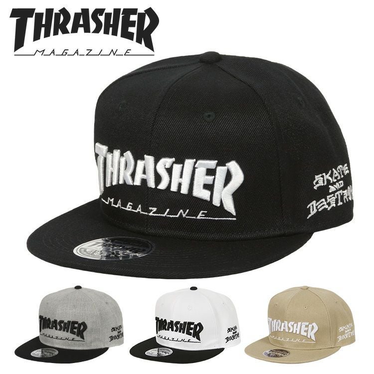 スケートボードファッションブランドのTHRASHER/スラッシャーから、6パネルBBキャップが入荷。フロントにブランドを代表するマガジンロゴ、サイドに「SKATE AND DESTROY」を刺繍したストリート感溢れるデザイン。ツバに貼られたステッカーもカッコいい!ツバは真っすぐなフラットバイザー(平ツバ)、芯ありのしっかりとしたフロントパネル、後部のスナップバックでサイズ調整が可能なので男女兼用で着用いただけます。