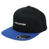 VOLCOMからフロントにボルコムのネームロゴが刺繍されたフラットバイザーが入荷。ブラックと鮮やかなツートンカラーのブルーブラックをご用意しました。フロントパネルには芯が入っていて、後ろのスナップバックでサイズ調整可。