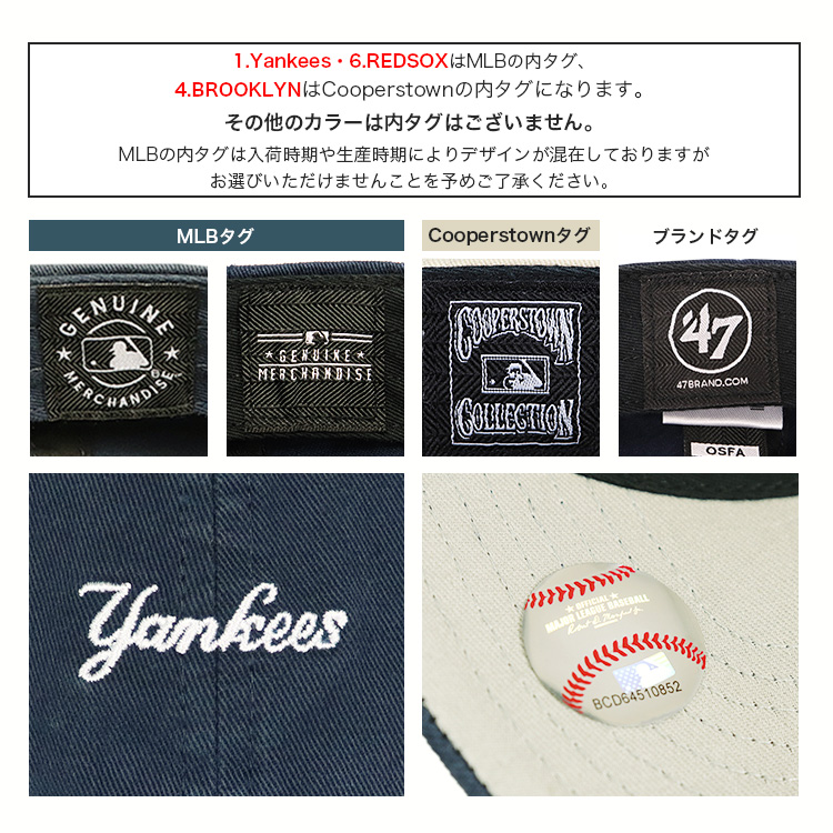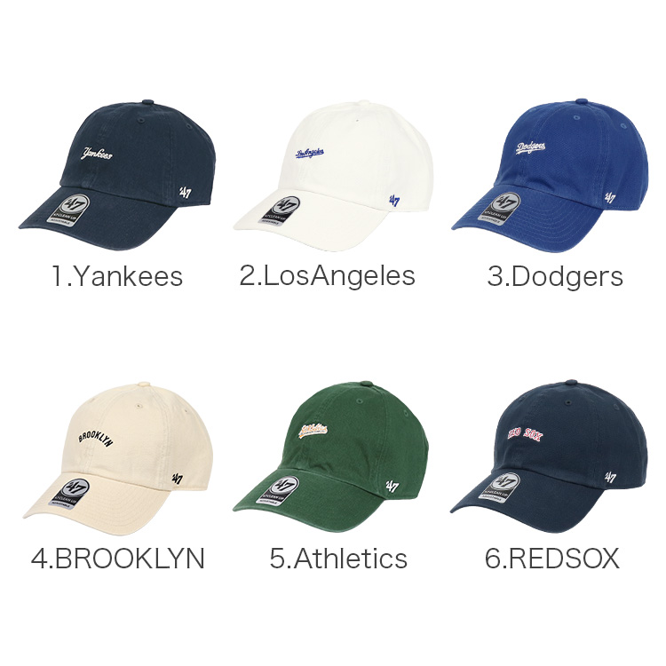 ボストン・レッドソックスのホームスタジアムであるフェンウェイパークでのワゴン販売からスタートとした'47(フォーティーセブン)は、今やメジャーリーグ・ベースボール(MLB)をはじめアメリカ4大プロスポーツ(MLB・NFL・NBA・NHL)の公認ライセンスを持つまでに成長した。少し浅めで曲げられたツバのカーブバイザーのキャップ「CLEAN UP/クリーンナップ」がこのブランドを代表する定番人気アイテム。