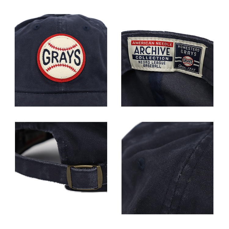 アフリカ系アメリカ人を中心としたプロ野球リーグのNegro Leagues /ニグロリーグで活躍したチーム、Homestead grays/ホームステッドグレイズの復刻デザインのローキャップが入荷。どちらの色もビンテージ感があっておしゃれでかっこいい♪フロントパネルには芯がなく、ツバは曲げられたカーブバイザー、後部のストラップバックでサイズ調整が可能なので、メンズ・レディース問わずご着用頂けます。