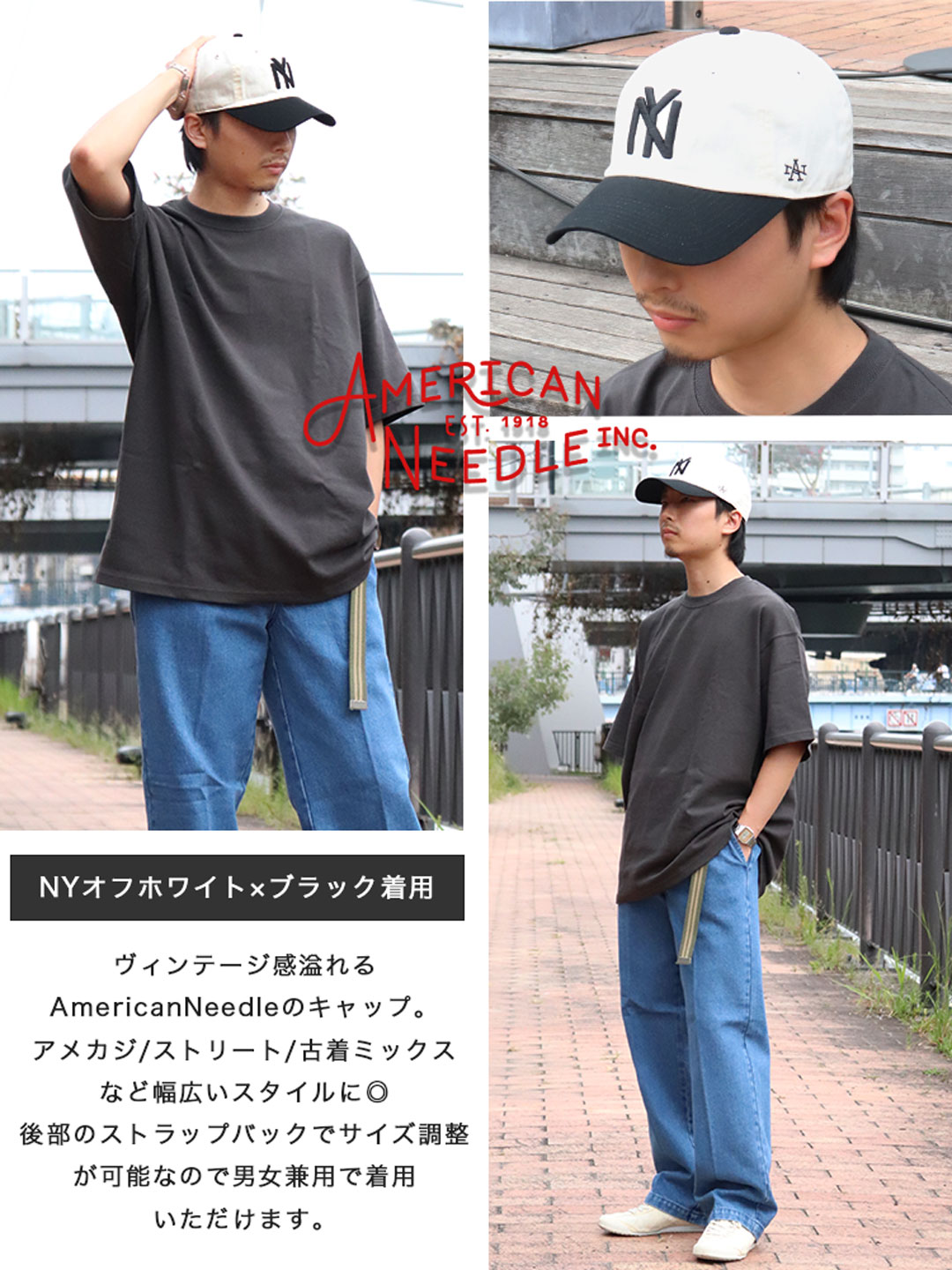 AmericanNeedle/アメリカンニードルから、定番人気のNYロゴ/LAロゴがフロントに刺繍された6パネルダッドハットが入荷。直線的なNYロゴは、1920年~1948年のアメリカ合衆国においてアフリカ系アメリカ人を中心に構成された野球リーグ「ニグロリーグ」のチーム、New York Black Yankees/ニューヨーク・ブラックヤンキースのデザイン。独特な凹凸のあるLAロゴはアメリカンニードルオリジナルのデザイン。幅広いファッションスタイルに合わせやすく、アメカジ/ストリート/古着ミックスなどのコーディネートに特にオススメです。洗い加工がかかったウォッシュドコットンを使用、ツバは曲げられたカーブバイザー、芯なしの柔らかいフロントパネル、後部のストラップバックでサイズ調整が可能なので男女兼用で着用いただけます。