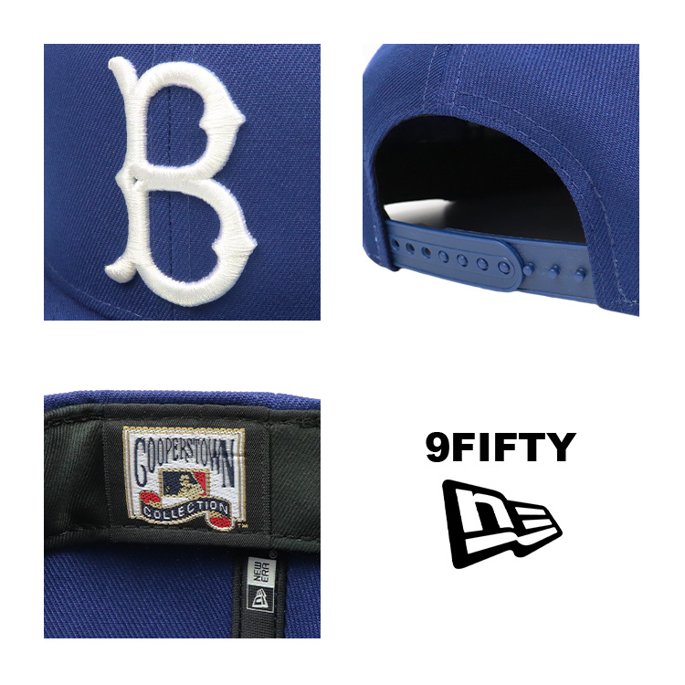 NewEra/ニューエラの9FIFTY(950)から、Los Angeles Dodgers/ロサンゼルス・ドジャースのCOOPERSTOWN COLLECTION、Brooklyn Dodgers/ブルックリン・ドジャースのロゴキャップが入荷。1947年、メジャーリーグ初の黒人選手として有名なジャッキー・ロビンソンと契約を結び、常勝軍団となった強豪チーム。デザインも現在のドジャースと同じ配色でありながらクラシカルで伝統の詰まったチームロゴが人気のアイテムです。芯のあるフロントパネルに、ツバは真っすぐなフラットバイザー。後ろについたスナップバックでサイズ調整が可能なので、ユニセックスでご着用頂けます。