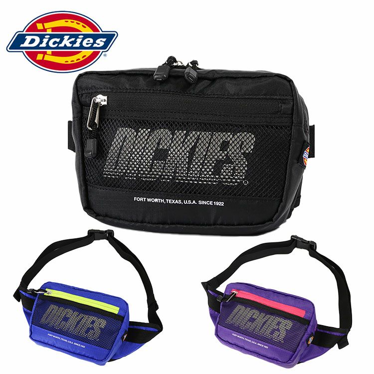 軽量で丈夫なリップストップ生地を使用したディッキーズのウエストバックが入荷。フロントにはメッシュポケットを採用。DICKIESの太ロゴ部分はリフレクター仕様。サイドには赤・青・黄色のおなじみのブランドタグが付いています。ウエストポーチとしても斜めがけバックとしても多様に使えるすぐれモノ。