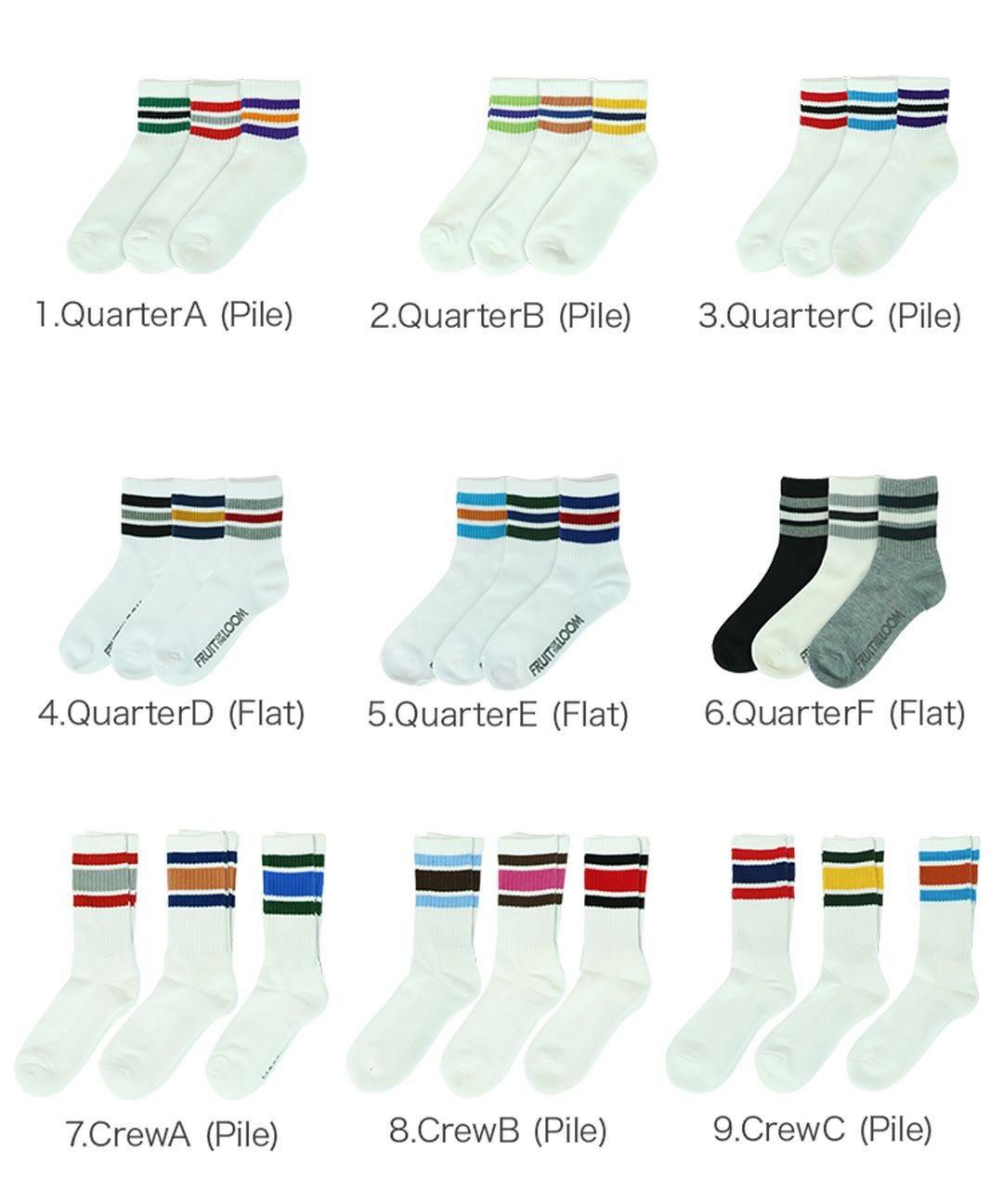 【3足セット】FRUIT OF THE LOOM ラインソックス メンズ ソックス フルーツオブザルーム 靴下 クルー ショート 紳士 男性用 クォーター リブ 足底パイル 平編み