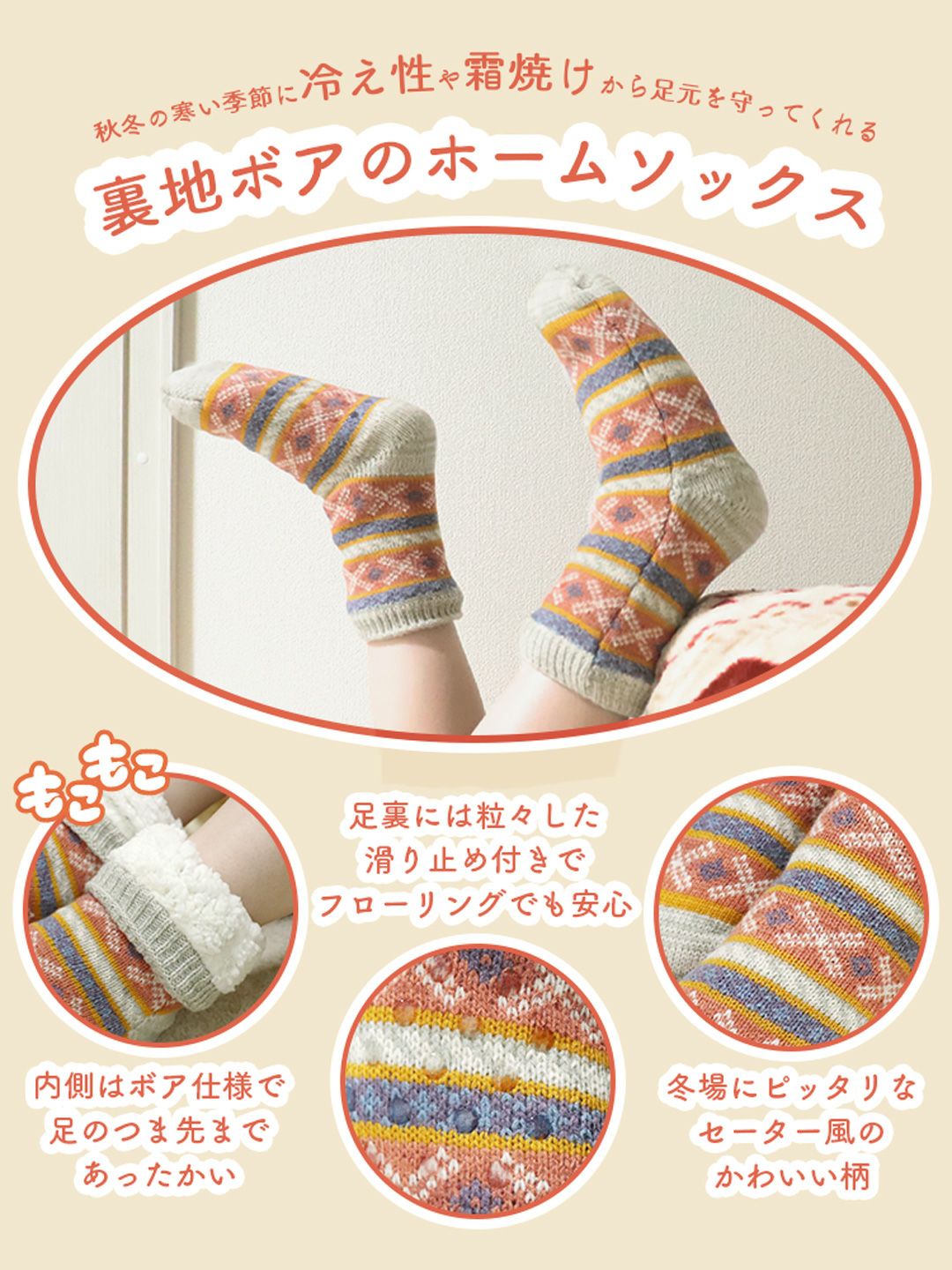 他の画像を見る ルームソックス レディース もこもこ あったか ホームソックス 裏ボア 靴下 ルームシューズ 防寒 秋 冬 保温 足首 ロング 暖かい ふわふわ 厚手 冷えとり 裏起毛 ルームウェア ナイトウェア 部屋着 滑り止め 通販 人気 ブランド メール便送料無料 99HeadwearShop価格 ¥ 1,000 税込 在庫切れ カートに入れる お気に入りに登録する