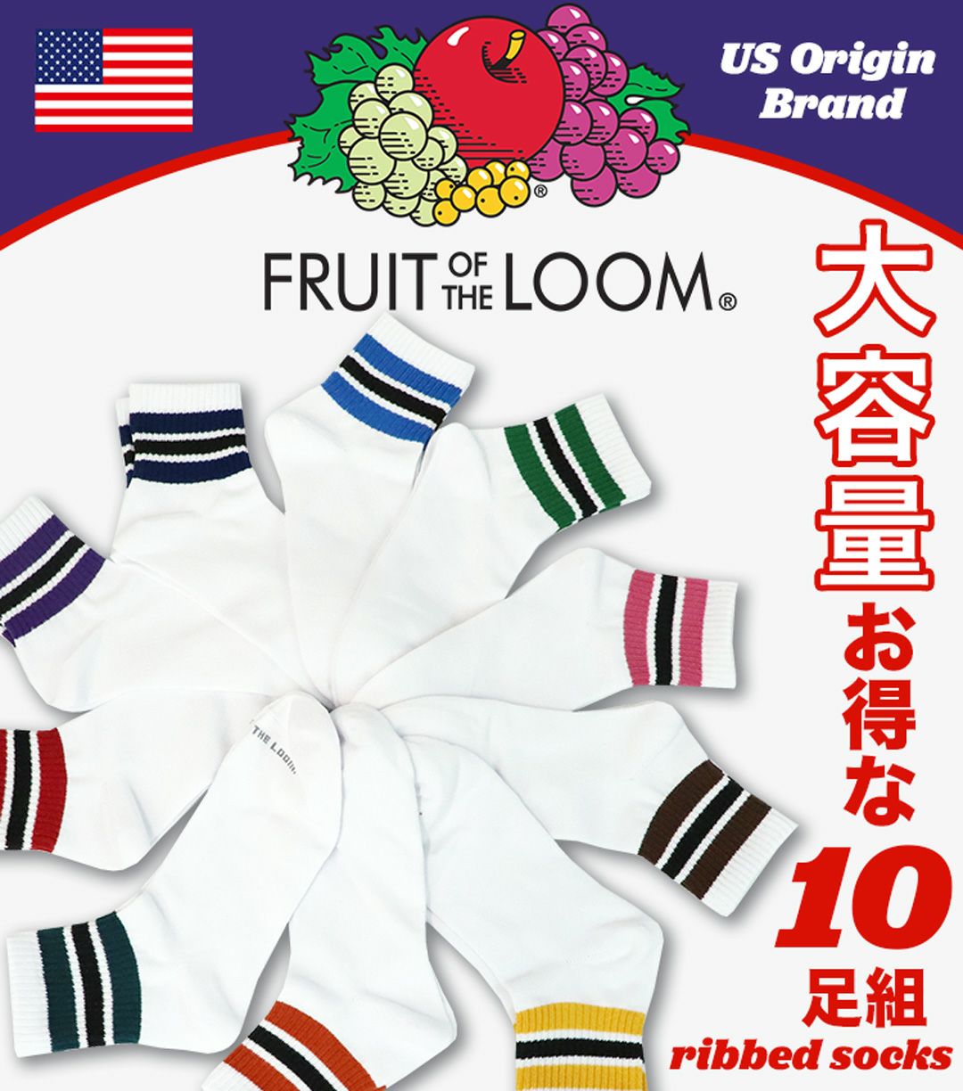 他の画像を見る 【10足セット】フルーツオブザルーム ソックス メンズ 靴下 FRUIT OF THE LOOM ライン クルー ショート クォーター ラインソックス スリークォータース リブ 通販 人気 ブランド 送料無料 99HeadwearShop価格 ¥ 2,970 税込 カートに入れる お気に入りに登録する